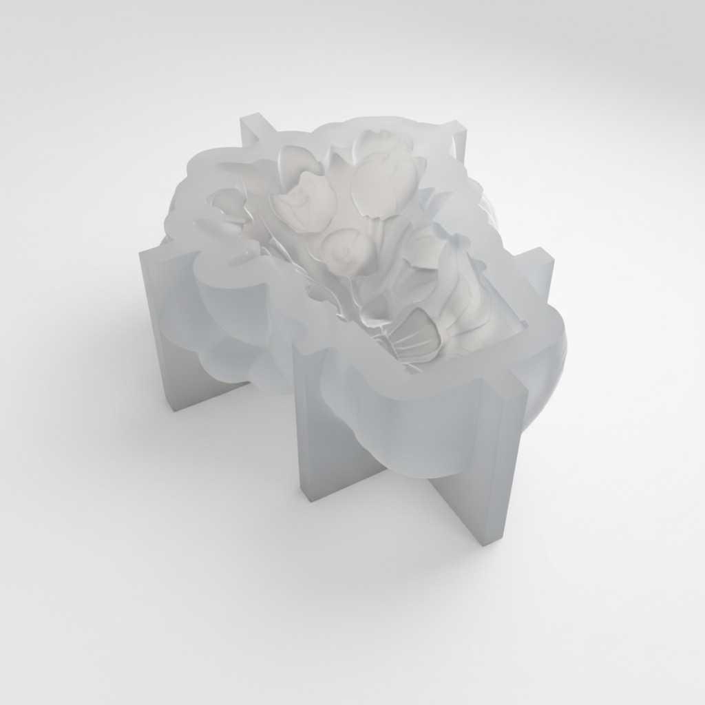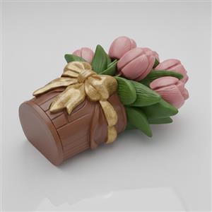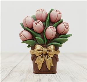 Durable silicone mold with a detailed bucket of tulips design. Flexible material ensures easy release and repeated use. Ideal for resin, soap, wax, plaster, and DIY craft projects.