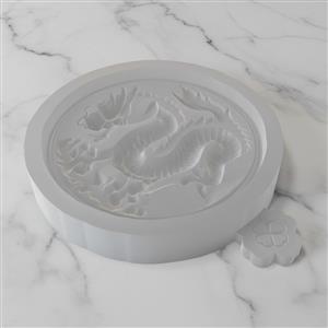 This silicone mold features a detailed Chinese dragon design in a medallion shape, symbolizing strength, luck, and prosperity. Made from flexible, durable, and food-safe silicone, it allows for easy demolding and cleaning. Ideal for epoxy resin, soap making, candle projects, chocolate molding, plaster casting, and other creative DIY uses. Perfect for decorative items, gifts, and themed collections.