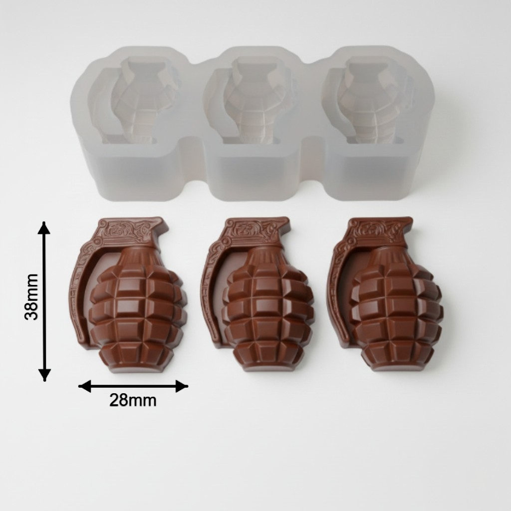 High-quality silicone mold featuring mini grenade designs. Flexible and durable for easy demolding and repeated use. Suitable for resin, soap, wax, plaster, and various DIY craft projects.