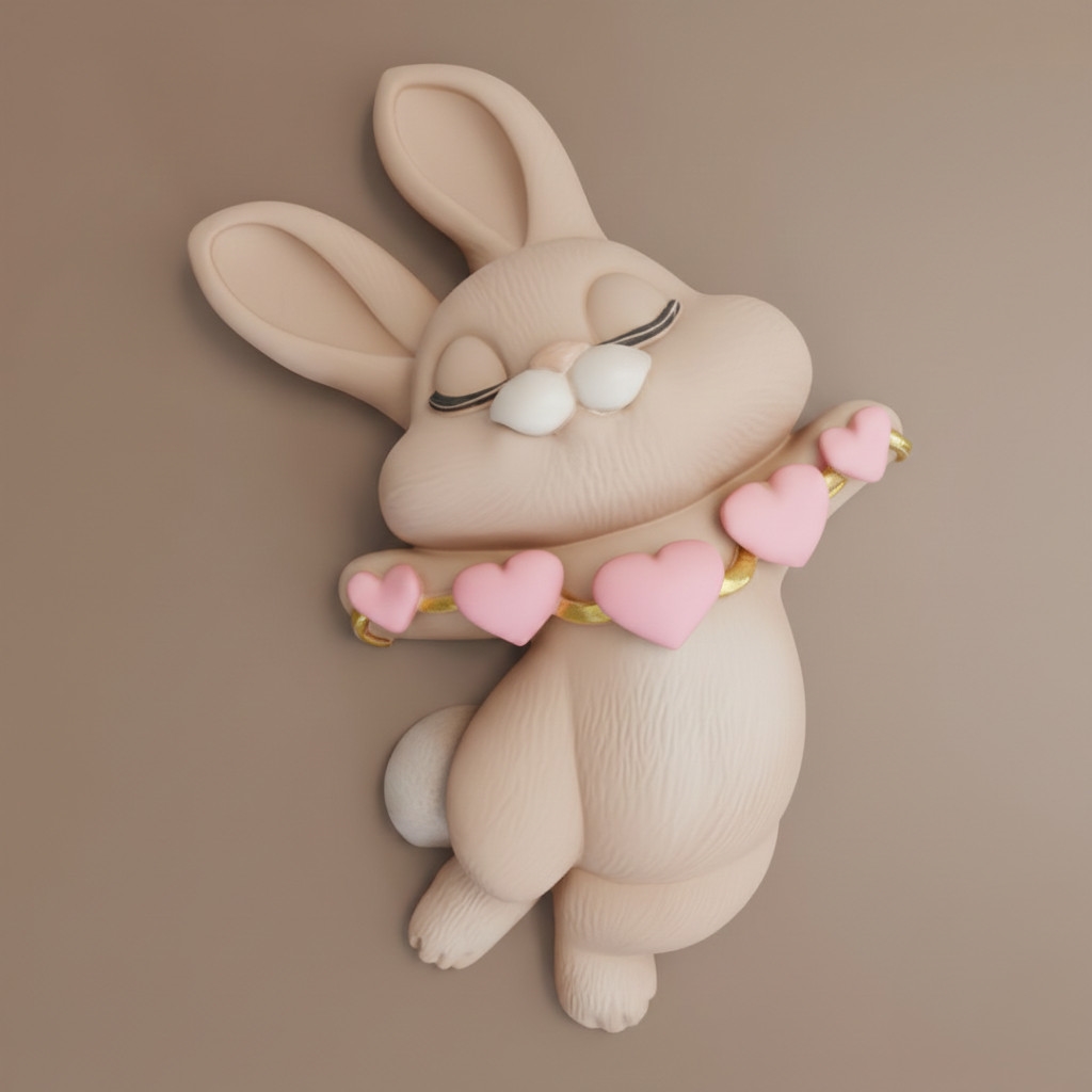 Durable silicone mold with a detailed rabbit holding a string of hearts design. Flexible material ensures easy release and repeated use. Ideal for resin, soap, wax, plaster, and DIY craft projects.