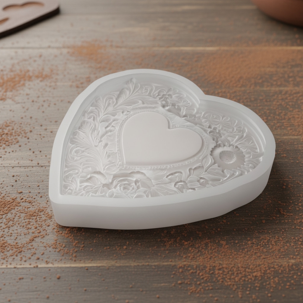 Ši silikoninė forma pasižymi išskirtiniu širdies dizainu, apsuptu subtilių gėlių raštų. Pagaminta iš aukštos kokybės, lankstaus ir patvaraus maistinio silikono. Puikiai tinka dervos gaminiams, muilo gamybai, žvakėms, šokoladui, fondantui, gipso liejiniams, molio dekoracijoms ir kitiems rankdarbiams. Forma perteikia smulkias gėlių detales, lengvai išsiima, yra daugkartinio naudojimo ir paprastai valoma.